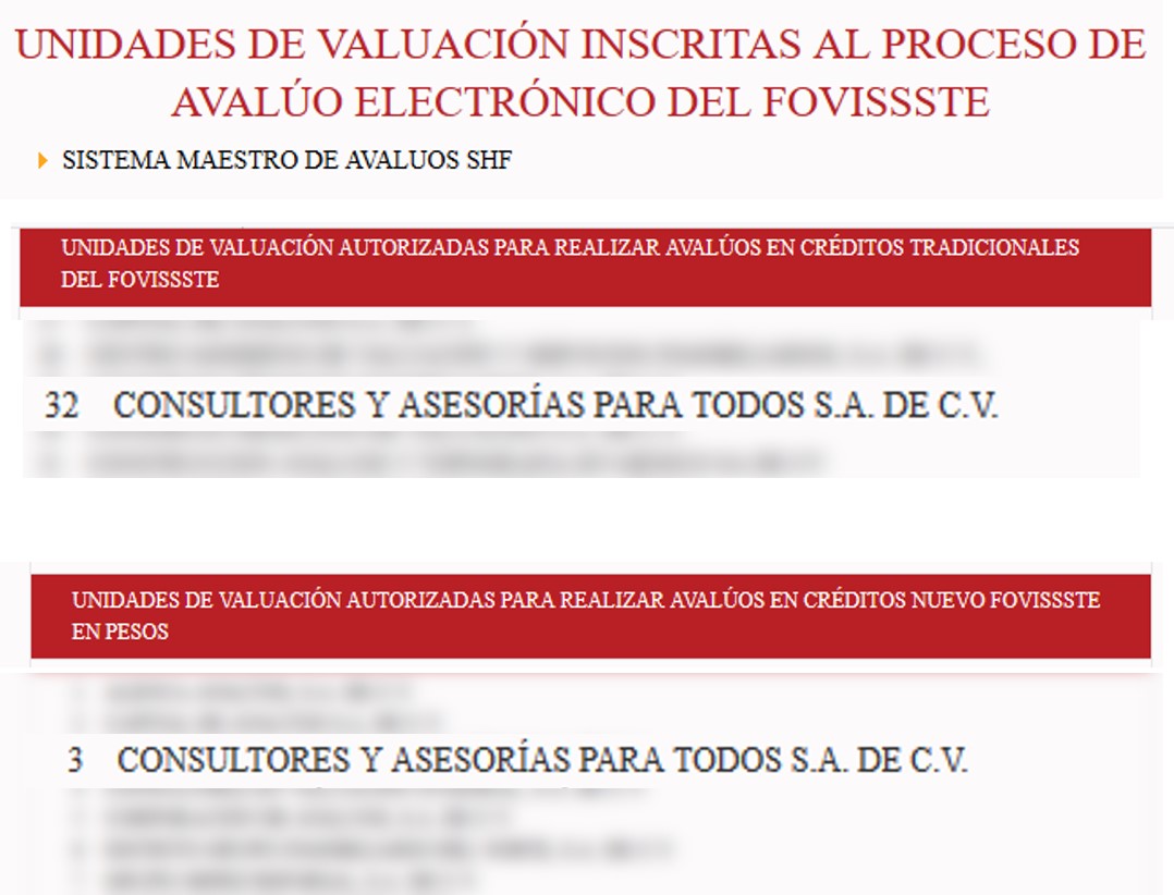 Puede revisar el listado de las Unidades de Valuación inscritas en la página de FOVISSSTE dando click aquí